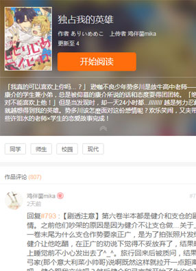 简介:《独占我的英雄》漫画讲述: 逊咖不良少年势多川是放牛高中老师——康介的学生兼小弟,总是被仰慕的康介所说的话和态度耍得团团转。「绝对不能喜欢上他!」但是当发现时,却一天24小时都...越是努力忍耐就越想得到我的英雄。势多川该怎麼面对这份感情呢?【